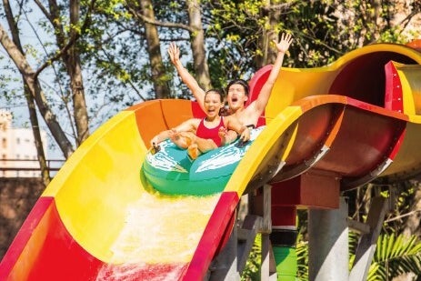 En piscinas de poca profundidad los splash park son una combinación de juegos de chorro, juegos de agua e incluso toboganes con hidrofrenada que proponen un juego divertido en un entorno seguro y espectacular.